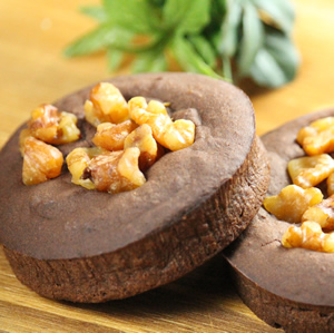 鎧塚俊彦のローカーボ・ブラウニーは手作りのやさしい美味しさ。しっとり、ずっしりと重量感のある濃厚なブラウニーで食べやすい丸いフォルムにはクルミがたっぷりとちりばめられ、食感のアクセントに。甘すぎないチョコレートのほろ苦さは大人のティータイムにピッタリ。食べごたえはありつつ糖質はしっかりと抑えました。